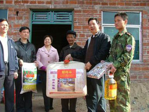 2006年12月25日,集團(tuán)匯源珠寶有限公司干部職工與團(tuán)市委領(lǐng)導(dǎo)來到東源縣燈塔鎮(zhèn)梨園村和紫金縣附城鎮(zhèn)上莊村,慰問這兩個村的全倒戶,給這里的22戶全倒戶每戶送上500至1000元的慰問金、床上用品及生活用品等慰問品,為我市災(zāi)區(qū)的全倒戶送上自己最美好的祝愿!